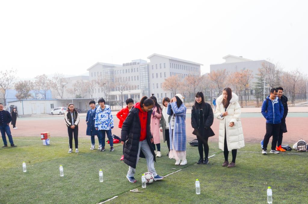 在中场的女生比赛中,每支队伍的四位队员配合默契,在互相激励中有条不紊地将球运过一个个障碍,传递到队友们的脚下。在经过一番较量后,税三四联队和财一二联队分别战胜了税一二联队和财税五班联队。