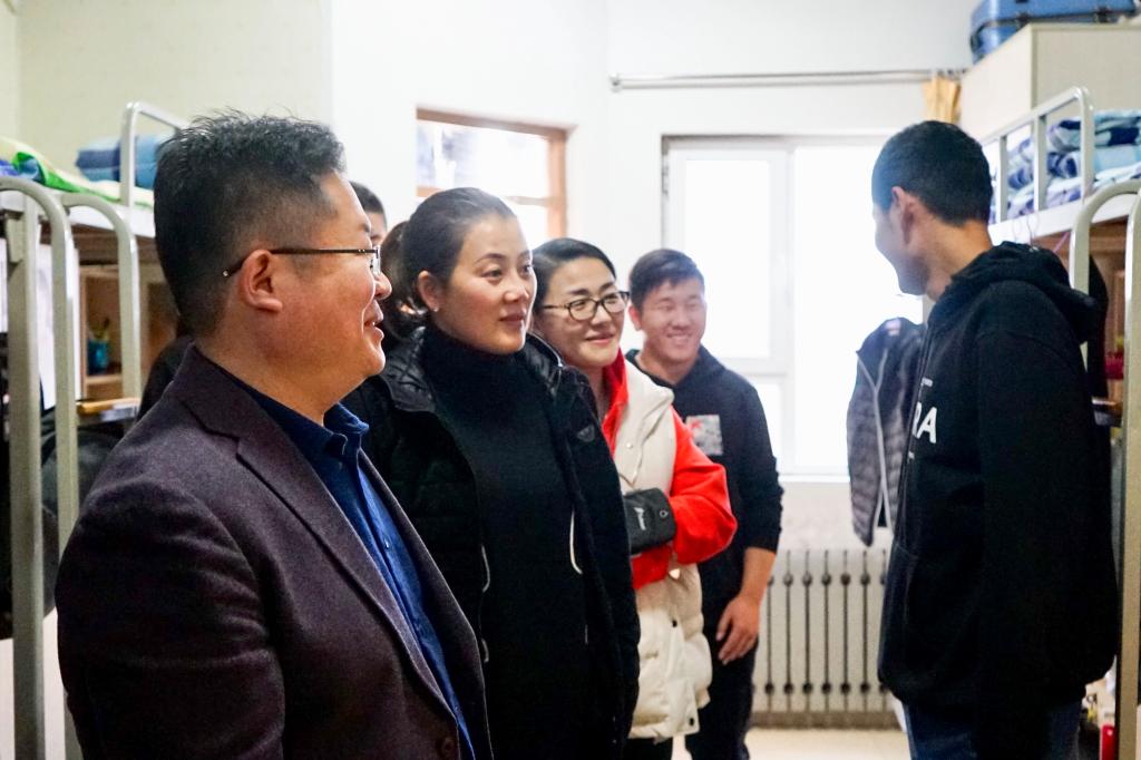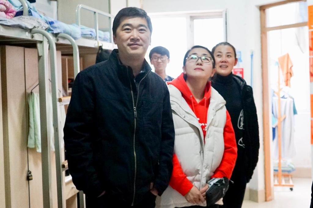 在检查过程中,老师向同学们了解宿舍生活情况,对同学们日常生活中所遇到的问题提出了中肯的建议。郭滨滨老师细心地为同学们提出了让宿舍更整洁有序的合理化建议,并提醒同学们要及时清理废弃物,避免垃圾堆积。针对宿舍内物品的摆放问题,王正一老师提醒同学们要合理归置个人物品,尽量将有限的宿舍空间利用最大化。李峻汝老师指出,冬季是流感多发季节,同学们应增强自我防护意识,养成良好的个人卫生习惯,加强室内空气流通,防止流感病毒在室内蔓延。李建永老师指出,为保障个人人身安全,宿舍应坚决杜绝大功率电器的使用,不仅如此,还应及时关闭电源,防范意外事故的发生。老师们不仅耐心地对公寓卫生和安全给予指导,还与同学们进行了饶有兴趣的交流,话语间充满温情,师生交流气氛轻松融洽。