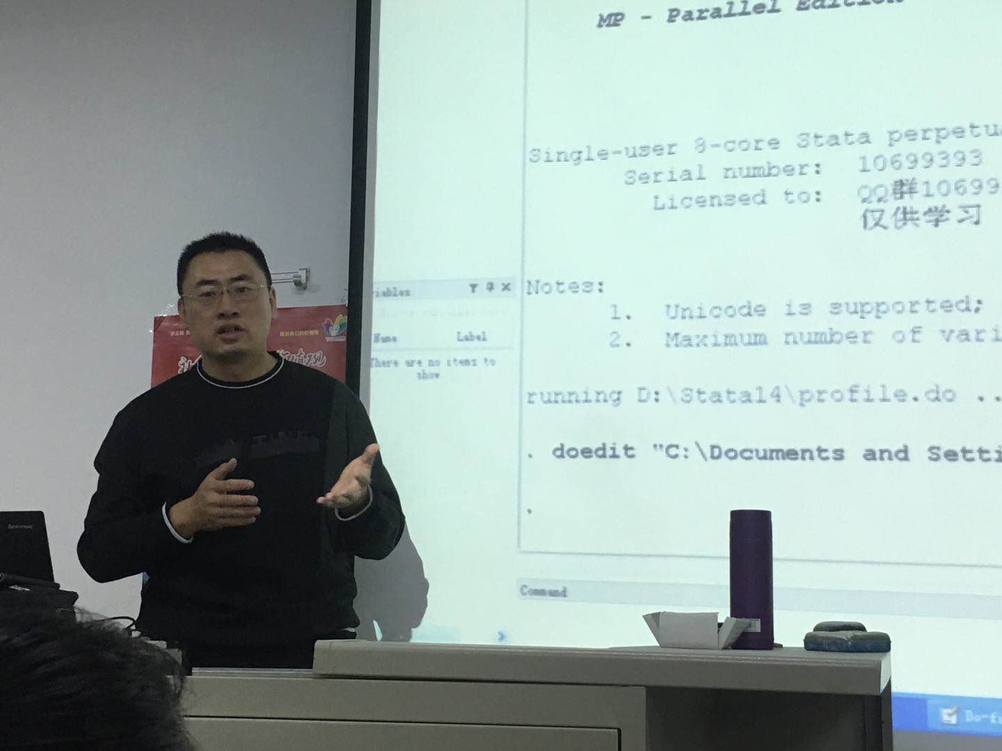 本次讲座主要围绕应用计量学习、Stata基本操作及数据获取来展开。李启航副教授凭借丰富的授课经验为大家详细讲解和演示了Stata软件的入门操作,并带领大家实战演练。容量为150人的教室座无虚席,讲座持续近三个小时,最后在大家热烈的掌声中圆满结束。