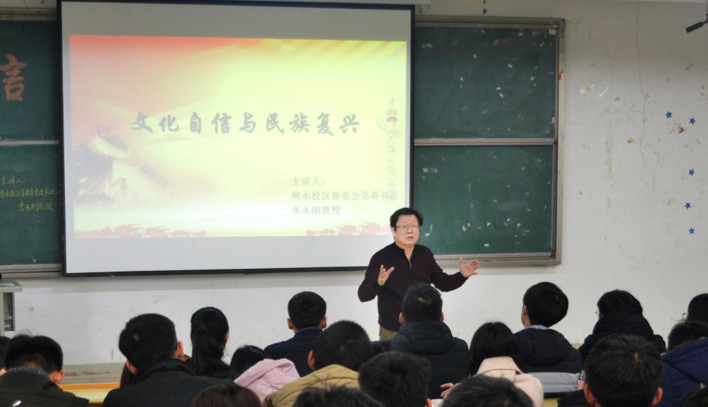 李永刚教授指出我国目前存在着文化资源丰富但文化影响力不够大的矛盾。他从六个方面讲述了如何塑造文化自信。他提出要塑造文化自信,需要认识自我的优势和劣势;找到合适的团队领导者;强调制度建设是文化建设的保障;强调中西合璧;强调特色创新;仪式和行为习惯是文化落地的支撑力量。李永刚教授特别强调习惯对人生之重要,提出要认识习惯的重要性、可行性、聚焦性,强调同学们一定要让思想变成日常行为和习惯。