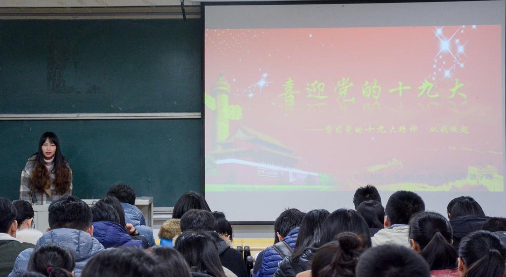11月,学院舜耕校区高年级各班陆续召开了以“喜迎十九大,贡献青春力量”“新征程,新起点”“不忘初心,永远跟党走”“加快生态文明体制改革,建设美丽中国”“千年小康梦,最后一公里”“坚定文化自信,推动社会主义文化繁荣兴盛”等为主题的班会,围绕主题进行宣讲。