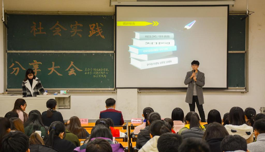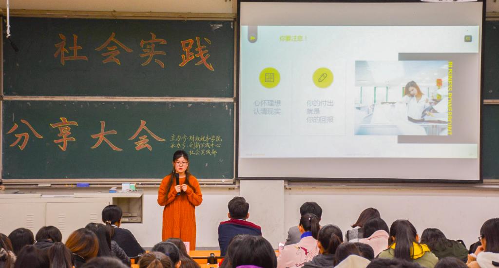主办,学生会创新实践中心社会实践部承办。分享会邀请了社会实践部副部长张格非和四位优秀学生代表:赵水莲、凌浩天、部德超、徐雨情。2017级部分学生参加了此次会议。