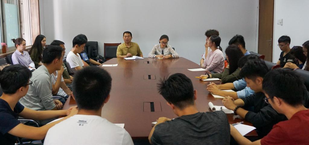 党委副书记汤长胜以及2015级辅导员程佳老师。研究生一年级党支部书记原2013级财政学一班班长刘旭,2014级财政学六班班长赵国辉、团支部书记庞莹莹以及2015级全体班长、团支部书记、学习委员参与了此次会议。