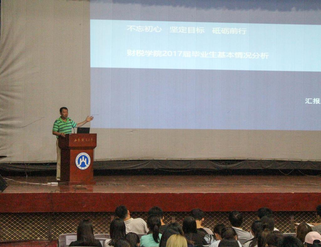本次大会由团委书记王正一老师主持,与会学院领导分别就“积极转变就业观念”“2017届毕业生基本情况分析”以及“考研参考”展开会议内容。