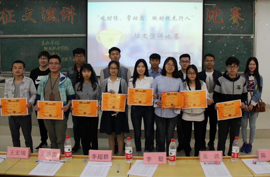 经过两个小时的角逐,九号选手财政学六班宋玉丹赢得一等奖,三号选手税收学六班翟瑞清、四号选手财政学六班苗馨雨、十二号选手税收学四班周慧敏获得了二等奖,一号选手税收学五班徐艺文、五号选手财政学五班张振宇、六号选手税收学五班王千贻、十三号选手财政学三班丁欢获得三等奖。