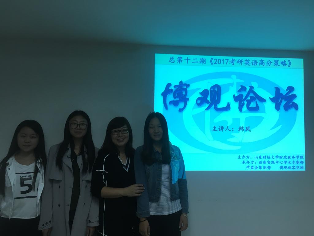 第十二期博观论坛“2017考研英语高分策略”的专题讲座于舜耕校区天舜大厦举行。主讲人是济南恩诚教育的创办人韩凤老师。出席本次博观论坛的有海角社区app