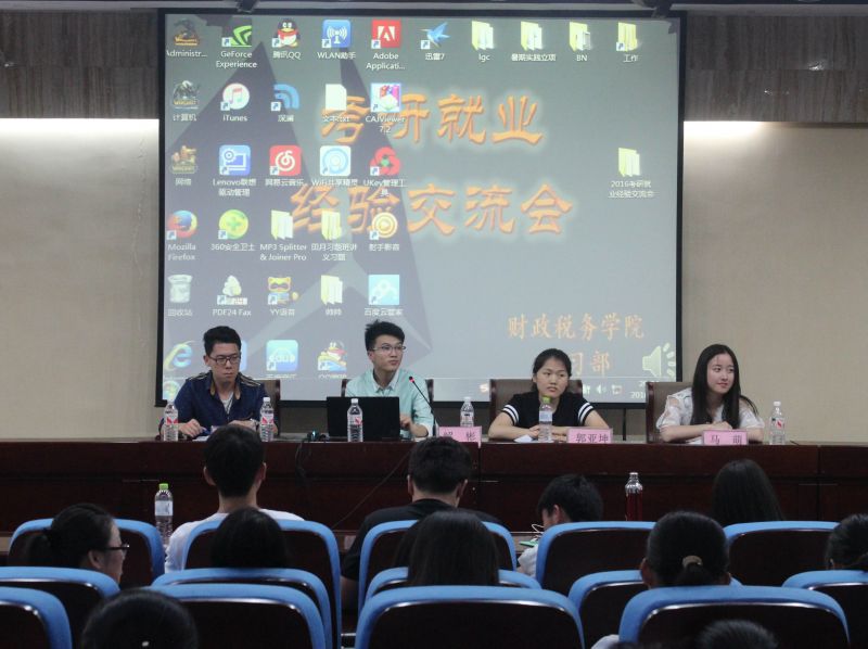 学生会学习部主办,主讲人是在研究生入学考试与国家公考中取得优异成绩的2012级学生代表马萌、李禛临、郭亚坤、解彬。财税学院圣井校区学生参加了经验交流会。