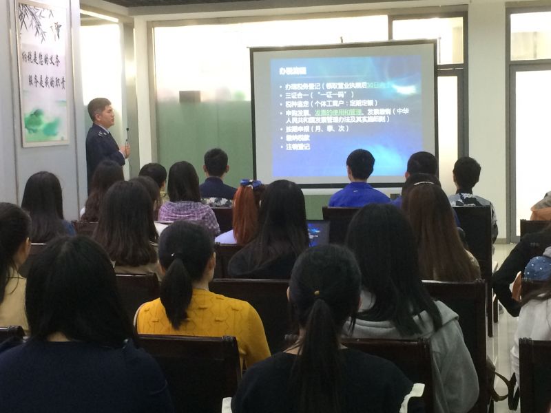 此次参观学习活动共分为三个环节。第一环节是学习相关税务知识。由税务工作人员为同学们进行讲解,重点讲述了大学生创业的税收优惠政策以及所得税的相关知识,并鼓励同学们积极进取,学好专业知识,实现自我提升。