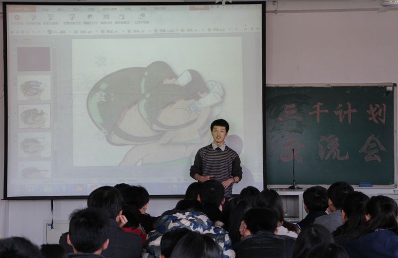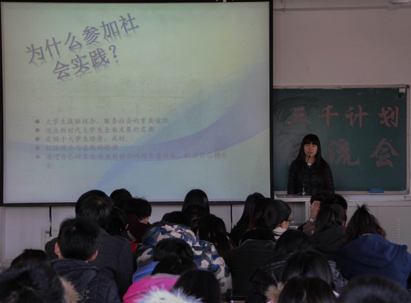 “临终关怀”调研团队代表吕妍以“走出校门,服务社会;提升素质,自我实现”为实践口号,着重介绍了课题选择的来源、选题注意事项以及问卷调查中应该注意的问题,分享了调研取得的成果和社会实践活动的重要意义。“2015年暑期希望活动”调研团队代表李辉和张莹向大家介绍了他们在活动前组建志愿者队伍的工作,并同大家分享了支教和社会实践的心得体会。“不忘初心,方得始终”是他们的代言,是对他们工作最好的诠释,更是他们对2015级新生的忠告。