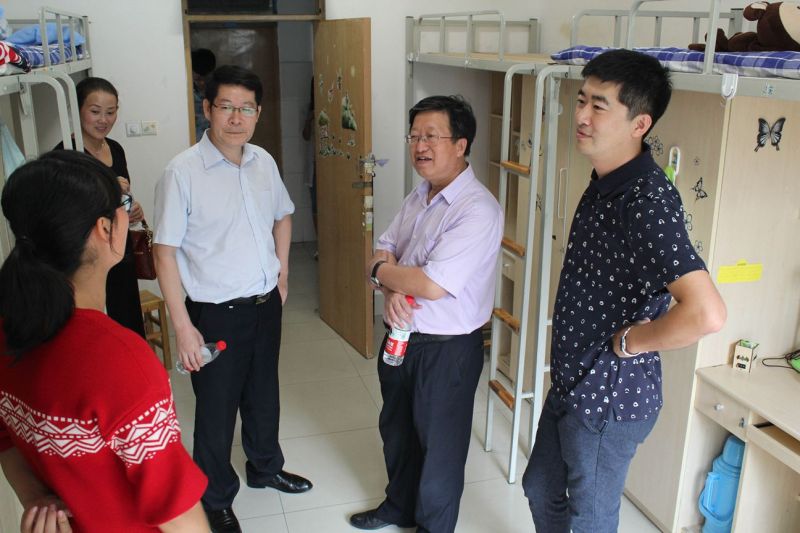 学院领导老师在迎新工作人员的带领下来到大一新生宿舍,关心新生的住宿情况。领导老师热情地与新生和新生家长交流,询问他们的意见,关切他们的报到情况,耐心细致地回答了家长们提出的问题。李书记向新生强调大学学习的重要性,希望新生在专业学习的基础上积极拓展视野,全面提高综合素质能力,学到更多的本领。汤副书记嘱咐新生要相亲相爱,和睦共处。2015级两位新生辅导员帮助新生整理床铺,详细解答他们的疑问。