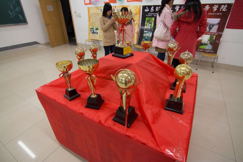 明德楼1304教室是优秀成果展。“模特大赛最佳表现奖”、“优秀组织奖”、“宿舍文化建设先进单位”等奖项彰显了财税学院的风采。运动会、歌唱比赛、“挑战杯”比赛、创业大赛等活动的奖状、证书更是不胜枚举。