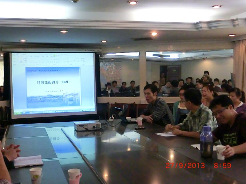 在《倾向匹配得分技术分析》的报告中,龚锋副教授介绍了倾向匹配得分技术的适用范围、基本原理、基本假设、数据要求以及实施步骤,并结合具体数据现场演示了倾向匹配得分技术的使用方法。在《公共部门经济学发展趋势及启示》的报告中,卢洪友教授首先系统的梳理了财政学发展历程,指出了公共部门经济学是财政学发展的必然趋势;在此基础上,分析了公共部门经济学的前沿研究方向以及今后发展的两个侧重点;最后联系中国的实际情况,提出要从效率和公平两个角度出发深化研究主题。同时,卢洪友教授和龚锋副教授与现场的师生进行互动,并热情耐心的回答海角社区app