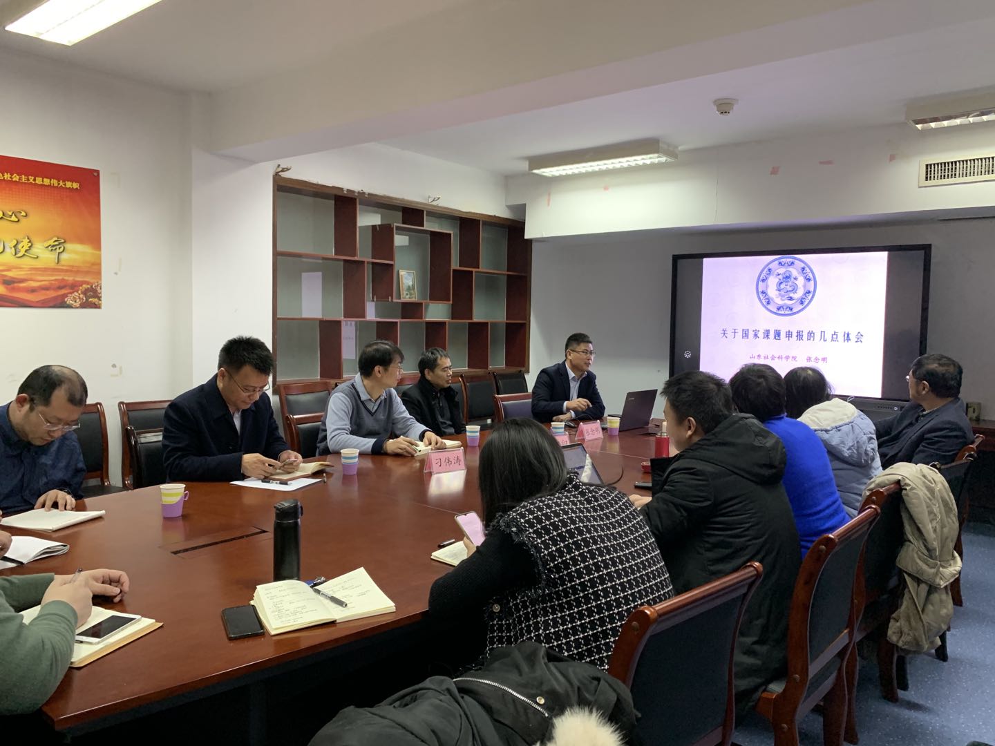 于办公楼816会议室举办国家社科基金项目申报经验分享会。本次会议邀请了青岛理工大学商学院刁伟涛副教授、山东社科院财政金融研究所张念明副研究员做了申报经验的分享和交流。会议由海角社区app