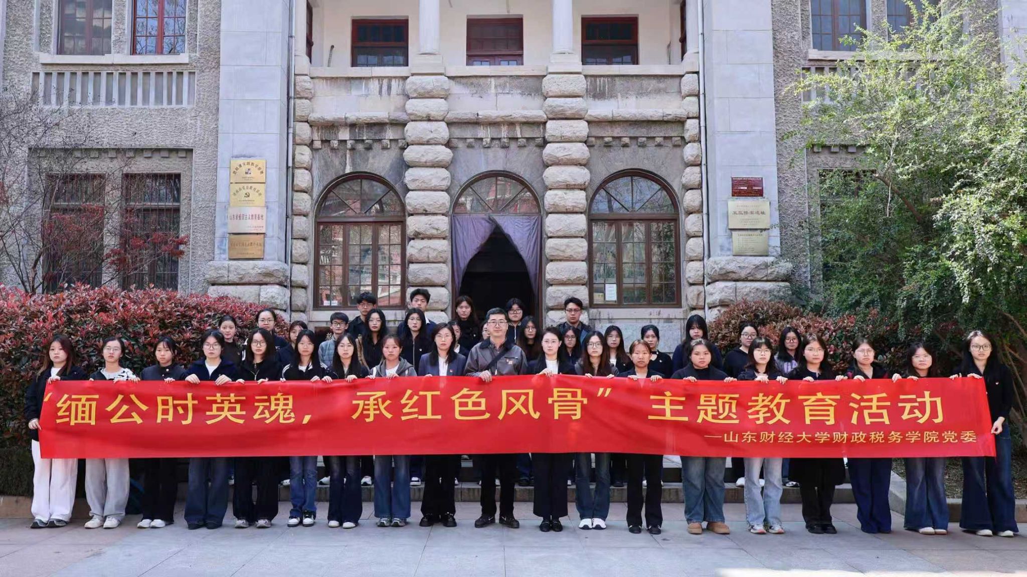 辅导员王正一、程佳、李昕鑫带领学生党员和入党积极分子前往济南蔡公时纪念馆,开展“缅公时英魂,承红色风骨”主题党日活动。