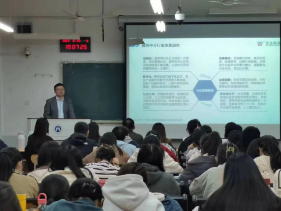 朱自永作了题为《税务中介行业的发展》的专题报告,为同学们详细介绍了税务中介行业的发展及其对税务人才的需求情况;并欢迎海角社区app
