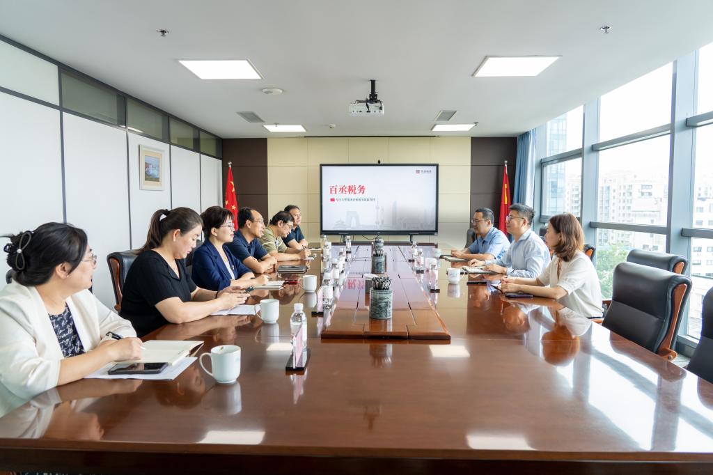 学科建设和人才培养的基本情况,并详细的介绍了人才培养方案(2024版)的修订情况。赵宝廷总结了四年来双方开展合作办学取得的成绩、经验与下一步拟采取的改进措施。滕晖详细介绍了第一届税收学(税务师方向)专业毕业生的就业情况等。百丞税务总经理董华先生从加强财税基础知识积累和数智课程学习等方面提出了对在校生知识储备和能力培养的建议。双方围绕人才培养方案修订、专业课程设置、学生综合能力培养等展开了热烈讨论。