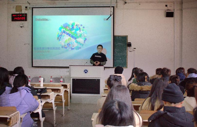 王勇简要概述了德勤会计师事务所的发展历程、业务条线以及未来入职德勤可能的方向,帮助大家对德勤有更深入的了解,从就业选择、工作与生活、能力与沟通三个维度切入,分享了自己在职业生涯中积累的宝贵经验。毛童琳针对大学生的就业择业问题,建议学生们在读书时,要明确自己的兴趣或擅长领域,据此做出选择的同时还要有所取舍,锁定一个目标赛道,在提升自身就业能力上做足功课。陈丙福结合自身工作经验,鼓励大家面对压力时应积极寻找解决方案,即使在高压环境下,也不应放弃与家人的相处时间,努力实现个人生活的和谐与幸福。在能力与沟通方面,李源认为,除了专业知识和技能等不可迁移能力,沟通能力、领导能力、组织能力等可迁移能力同样重要,用人单位在招聘时不仅看重学历和专业,还强调语言能力、办公软件使用等软性技能。他建议求职者提前了解目标岗位需求,通过实习实训和获取相关专业证书提升自己的就业竞争力。