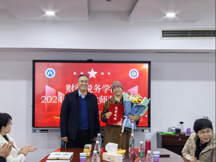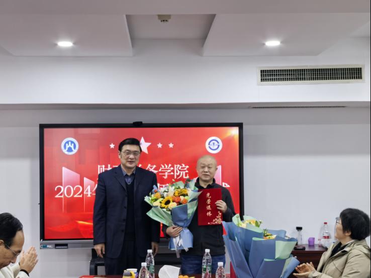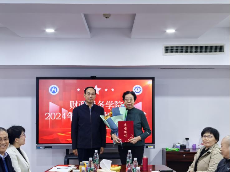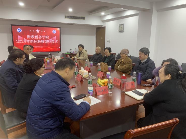 2024年退休教师荣休仪式在办公楼816会议室举行。退休教师朱德云、宫晓霞、张永政等受邀参加仪式。财税学院党委书记刘波,院长李森,党委副书记张代宝、滕晖,副院长赵宝廷出席仪式。学院部分教师代表参加仪式。仪式由党委副书记张代宝主持。