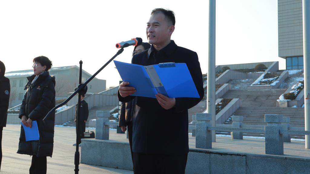 党委副书记滕晖,副院长赵宝廷,辅导员代表,学生党员、预备党员、入党积极分子和2024级新生共同参与。升旗仪式由滕晖主持。