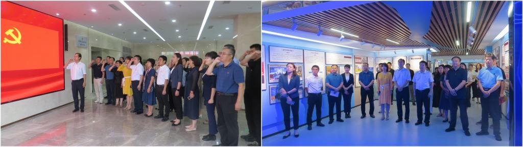 参观结束后,全体党员在税史馆内举行了庄严的重温入党誓词仪式。在发展规划处处长高天云的带领下,大家面对党旗,高举右拳,庄严宣誓。铿锵有力的誓言表达了党员们不忘初心、牢记使命的坚定信念。