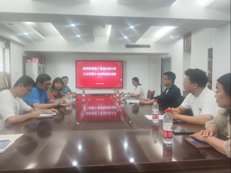 石伟对王文钊博士的到来表示热烈欢迎,愿进一步加强交流,巩固和深化合作,也欢迎王博士对学院工作提出批评指导。李森介绍了学校和学院近年来在专业设置、人才培养、学科建设、师资队伍、人才引进等方面取得的成绩。刘金东介绍了学校期刊分类目录的有关情况。张新颜介绍了学院海外人才引进等方面的政策规定。