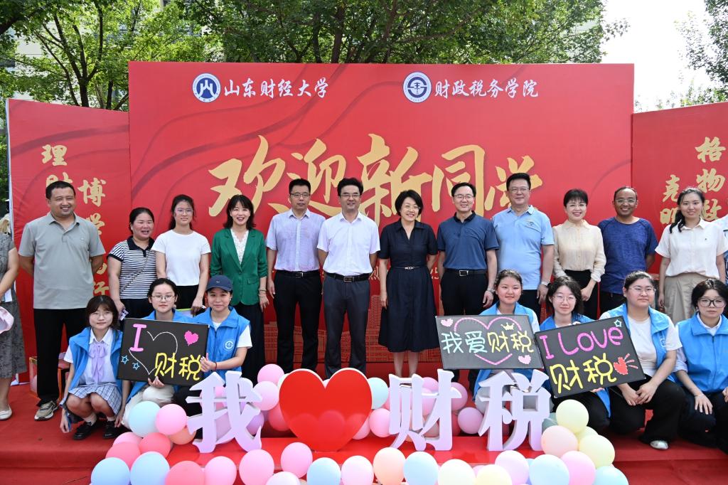 迎新现场,了解学院新生报到情况,与新生亲切交流,并与学院师生及新生家长合影留念。