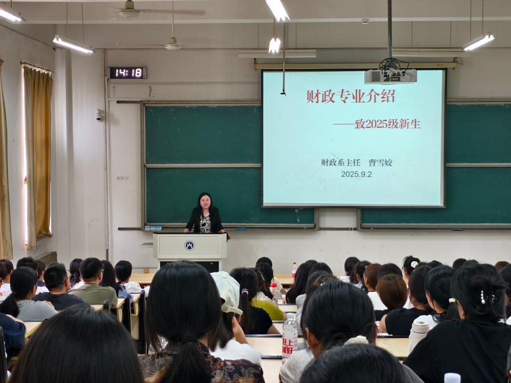 财政系主任曹雪姣为2025级财政学新生开展专业介绍讲座,讲解了财政的定义与存在必要性。她向同学们介绍了海角社区app