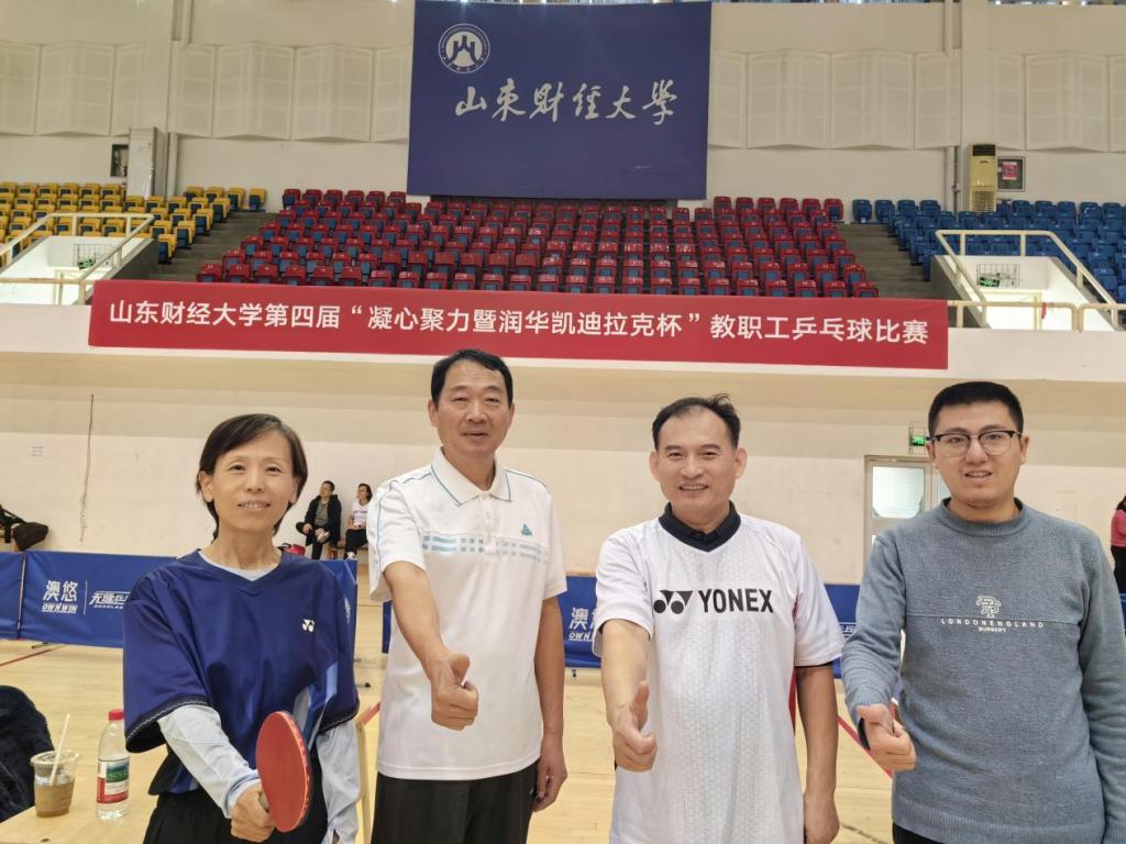 第四届“凝心聚力暨润华凯迪拉克杯”教职工乒乓球比赛在舜耕校区体育馆举行。学校党委副书记谢申祥、工会主席邱博等出席。