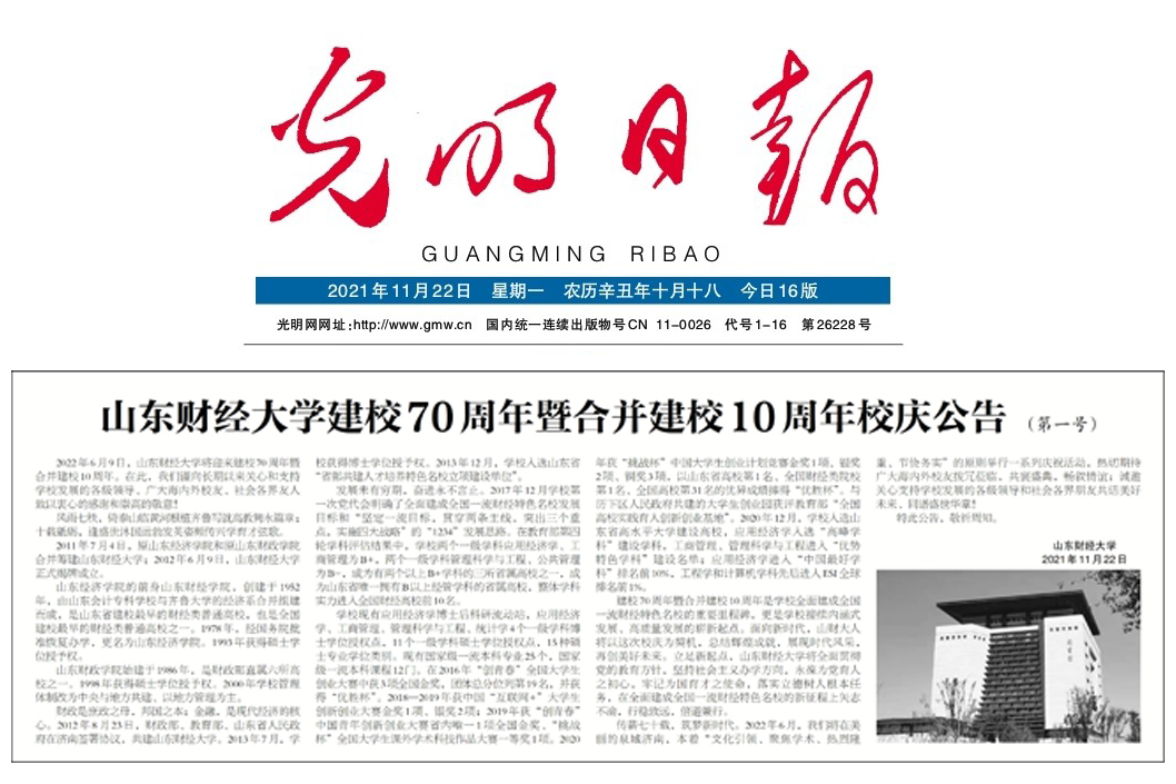 发展未有穷期,奋进永不言止。2017年12月学校第一次党代会明确了全面建成全国一流财经特色名校发展目标和“坚定一流目标,贯穿两条主线,突出三个重点,实施四大战略”的“1234”发展思路。在教育部第四轮学科评估结果中,学校两个一级学科应用经济学、工商管理为B+,两个一级学科管理科学与工程、公共管理为B-,成为有两个以上B+学科的三所省属高校之一,成为山东省唯一拥有B以上经管学科的省属高校,整体学科实力进入全国财经高校前10名。