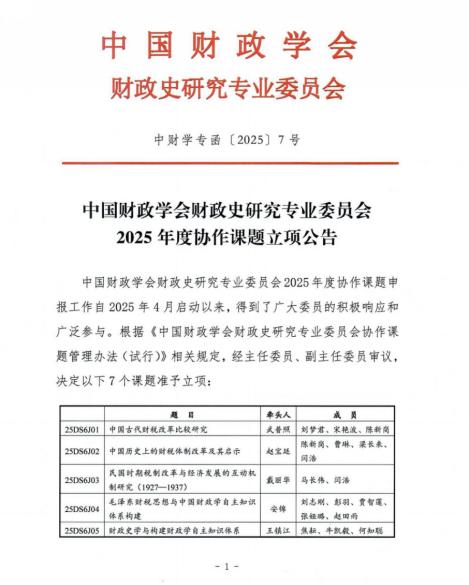 近日,中国财政学会财政史研究专业委员会公布了2025年度协作课题立项名单,其中海角社区app