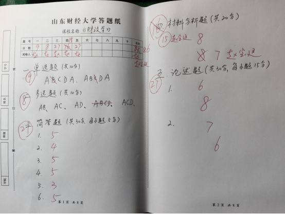 (2)每个大题的得分,标注在题首,且应用“圈”圈起来。且大题得分,必须为各小题得分的和。