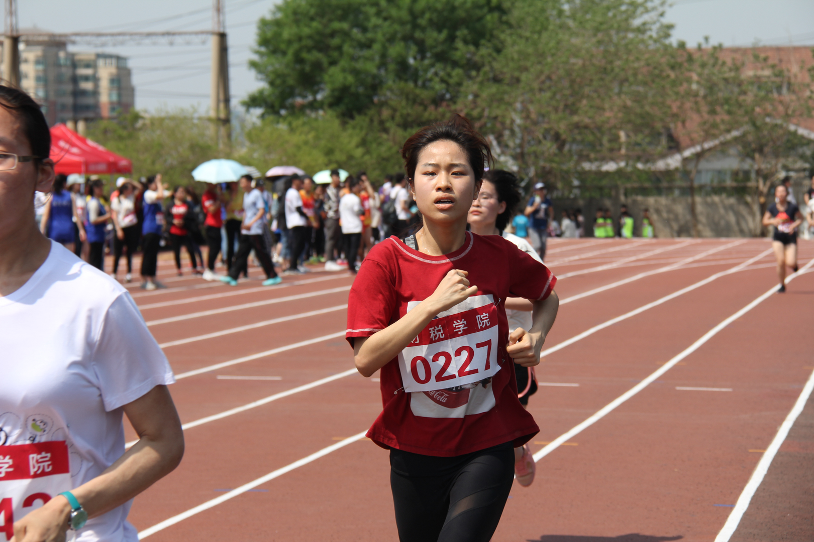 2017级税收学二班董法辉凭借自己娴熟的技巧、顽强的毅力在男子跳高比赛中取得第二名的好成绩,2016级财政学五班林雨薇在女子三千米的赛道上挥洒汗水、释放激情,跑出了自己的精彩,最终荣获第三名。