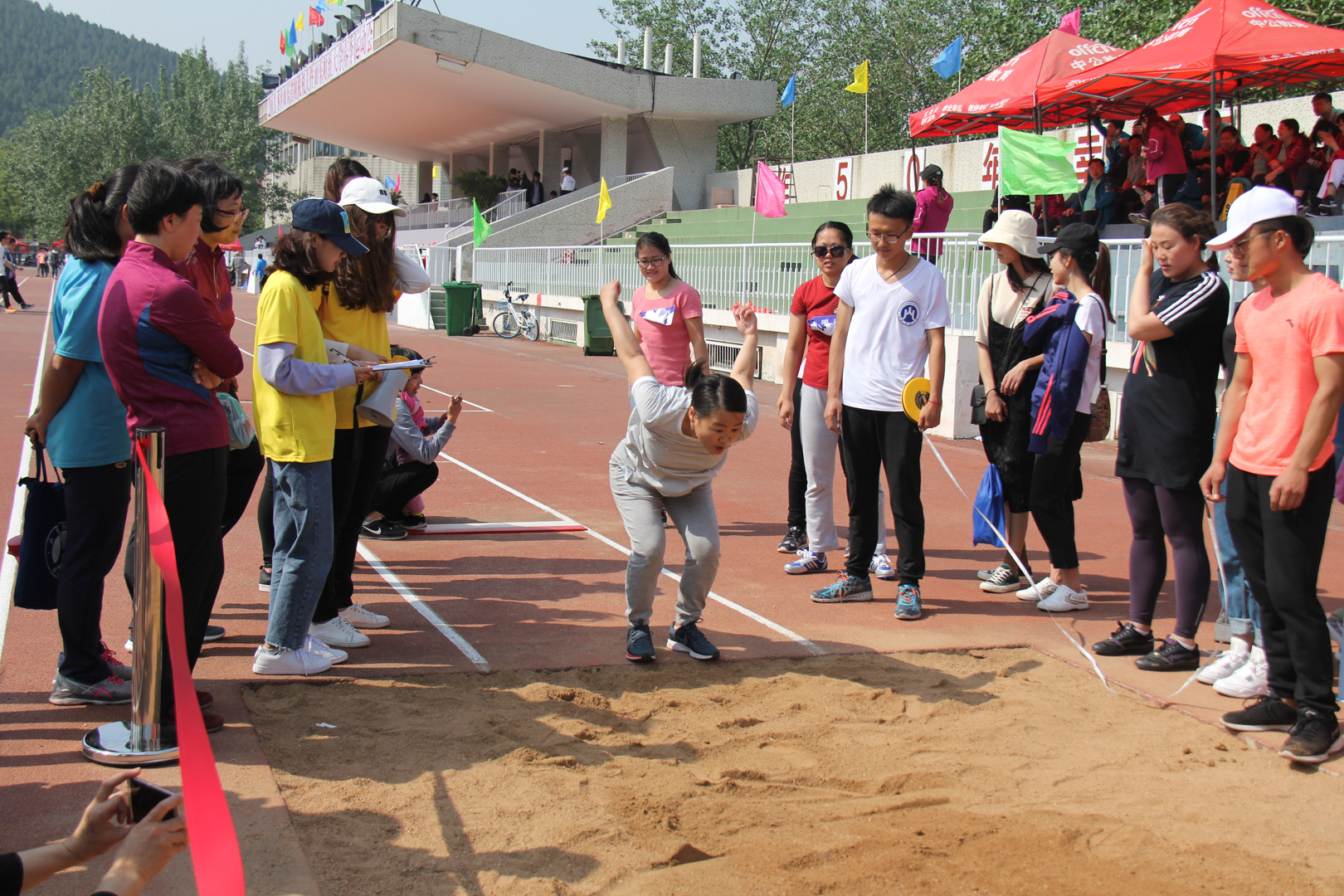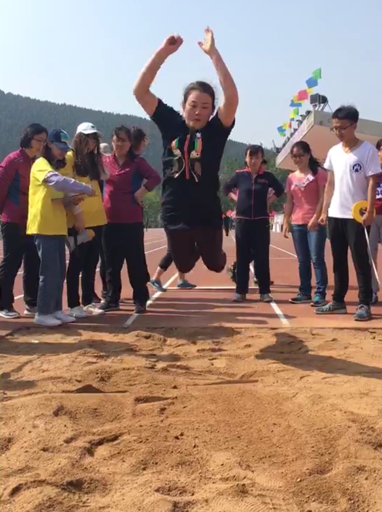 的老师们也踊跃参与了此次运动会并取得了优异的成绩。李峻汝老师获得了立定跳远和铅球比赛两项冠军,张新颜老师获得立定跳远第三名。