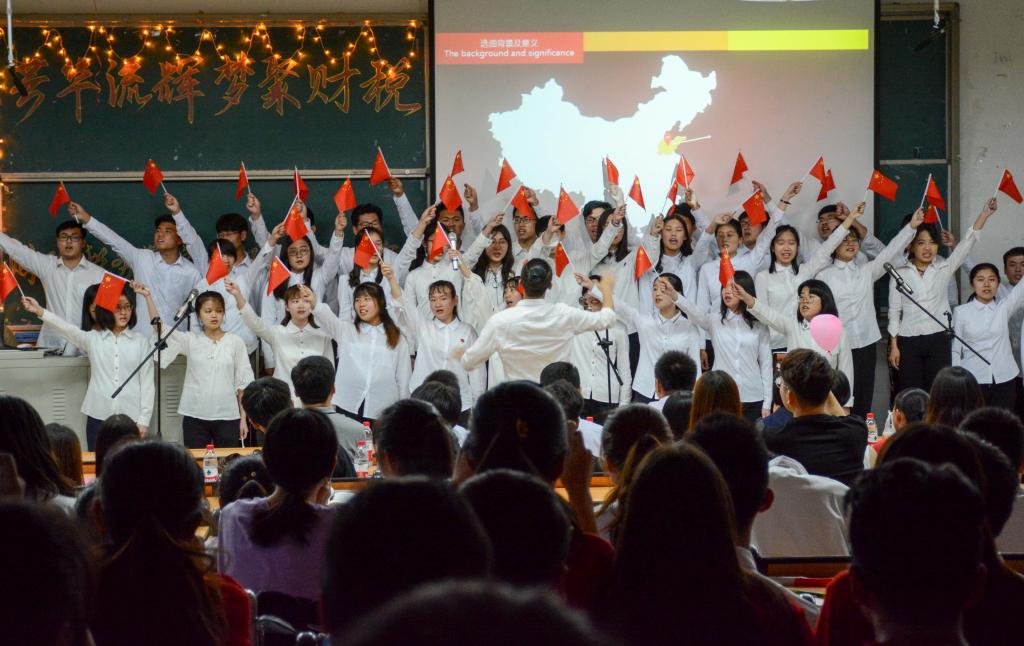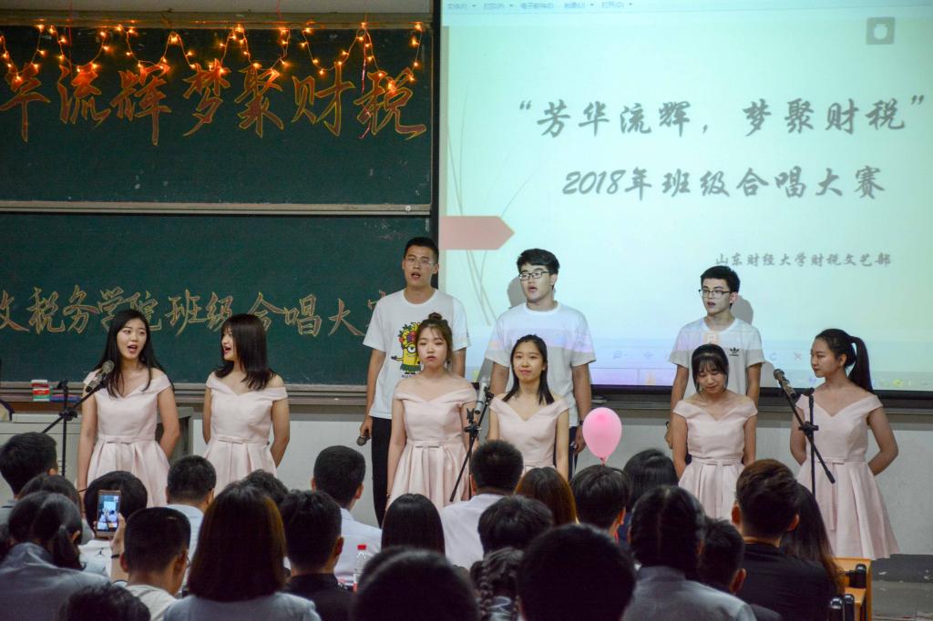 第二个班级财政学五班,他们带来的《追梦赤子心》编排精心,歌声极富感染力,引得现场掌声不断,赞叹连连。
