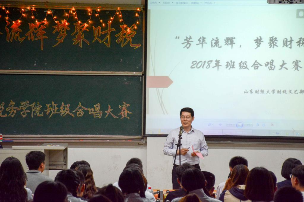 颁奖结束后,学院党委书记李玉成对本次合唱大赛进行了总结发言,对财税学子在合唱大赛中所展现出来的积极向上的精神面貌提出了表扬,对院学生会各部门同学的精心策划与准备表示了感谢。李书记以历史上的有志青年为楷模,对财税学子的未来提出了要求和展望,提出同学们应当“明德修身,严于律己,做知行合一的大学生”。
