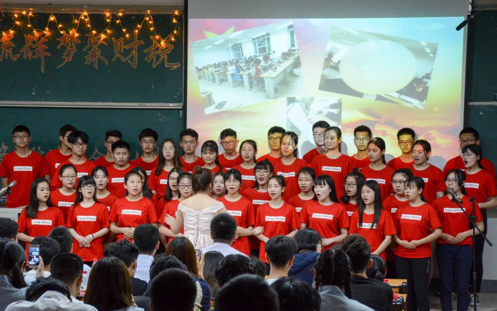 税收学三班为合唱曲目《中国》准备的民国风服饰让人眼前一亮,对祖国的深情告白通过优美的歌声传递出来。