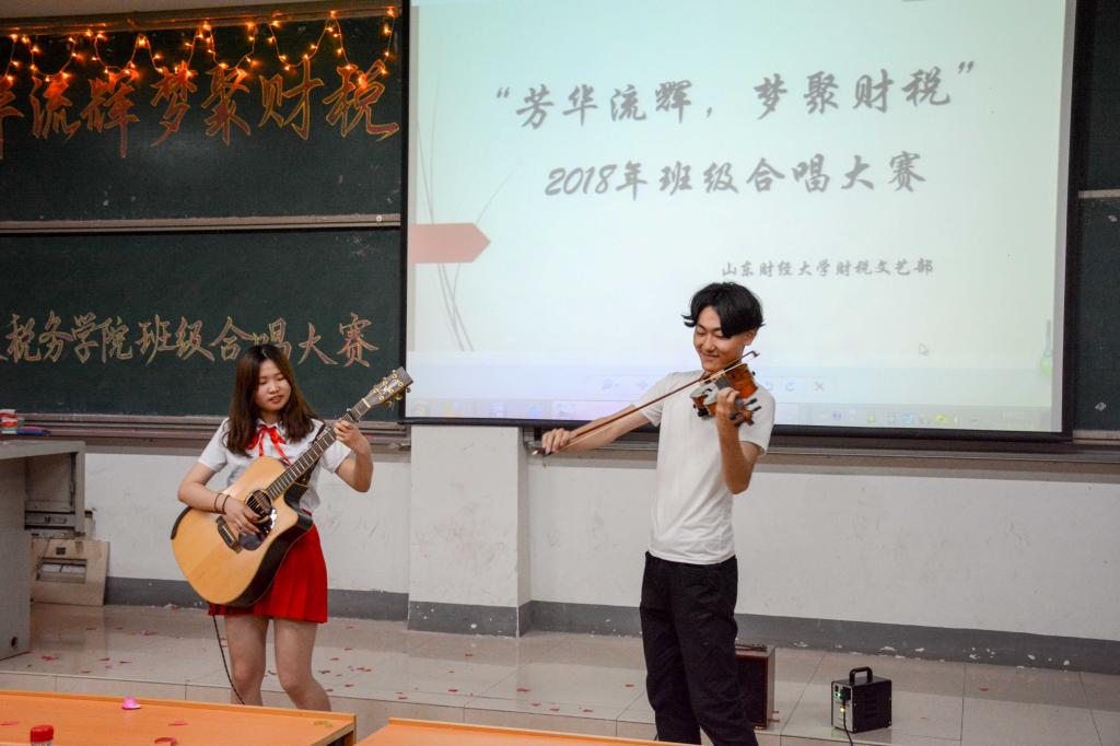 首先是税收学一班带来的《我爱你中国》,统一的着装和真挚的歌声让大家听到了财税学子爱国的赤诚之心。
