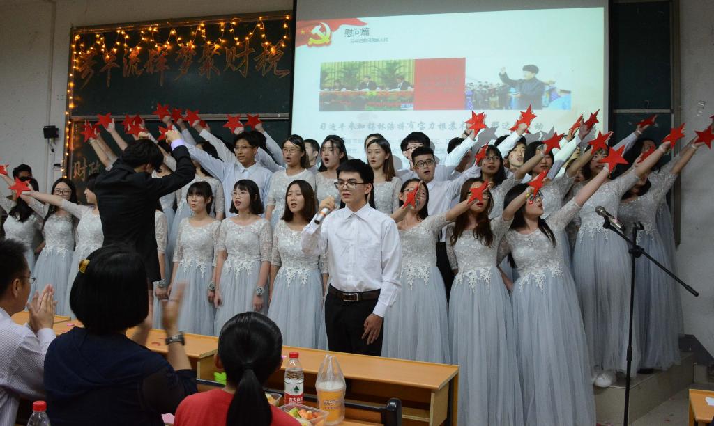 财政学一班带来的《不忘初心》积极响应十九大号召,用全班的凝聚力完美诠释了中国道路。