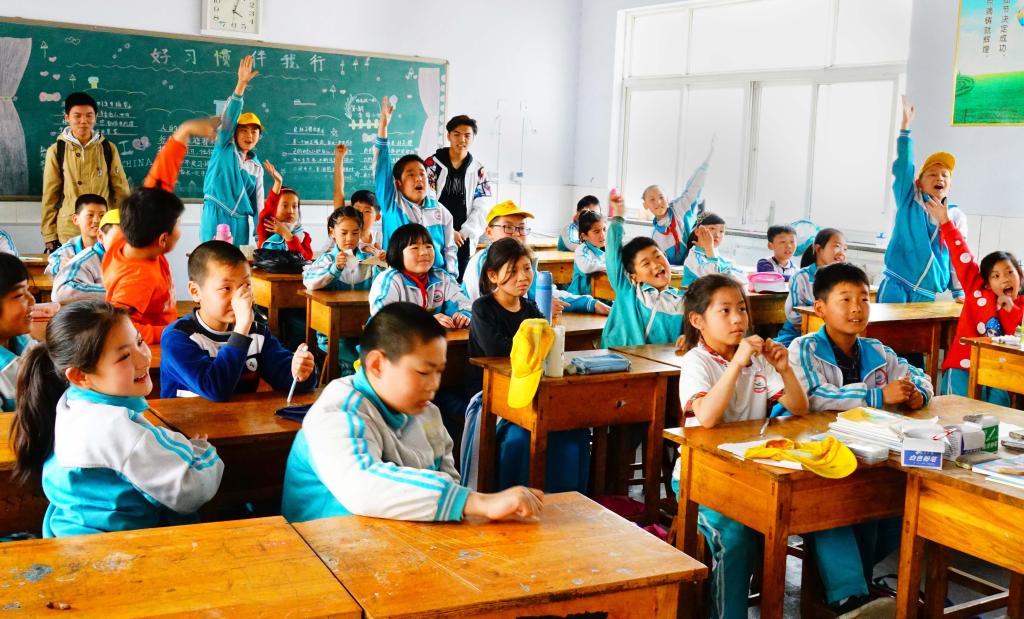 循着乡间小径,志愿者们来到了李福小学。小同学们端坐着,一双双明亮的眼眸里充满着对知识的渴望。在四年级一班,志愿者向同学们介绍中国近代史,讲述革命先辈们誓死保卫祖国和人民的故事,激起了同学们心中的爱国之情。在讲课的同时,志愿者把同学们分成三组,通过答题相互竞争,同学们踊跃举手回答,争相表现自己,在活跃的课堂气氛中充分享受了学习的过程。四年级二班的教室里,志愿者为同学们描绘了祖国的大好河山,从林海雪原到长江三峡,每一幅壮丽的景象都让同学们惊叹连连。志愿者们为此次支教活动做了充分准备,无论是让同学们分成小组互相竞赛,还是和同学们互动的讲课方式,都让同学们在轻松愉快的氛围下,不仅享受了学习的过程,更提高了学习的效率。