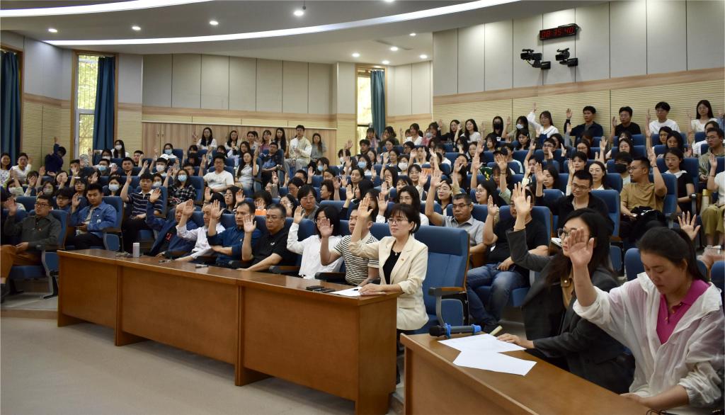 在舜耕校区第一阶梯教室召开全体党员大会,选举学校第二次党员代表大会代表。会议由学院党委书记刘波主持,学院全体党员参加大会。