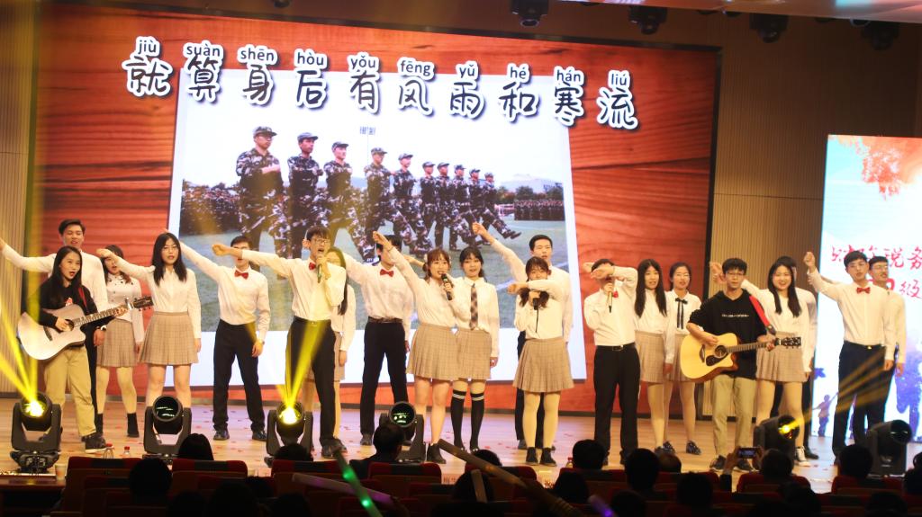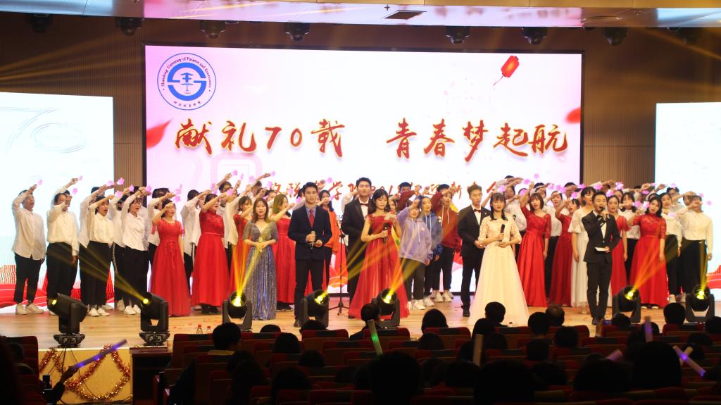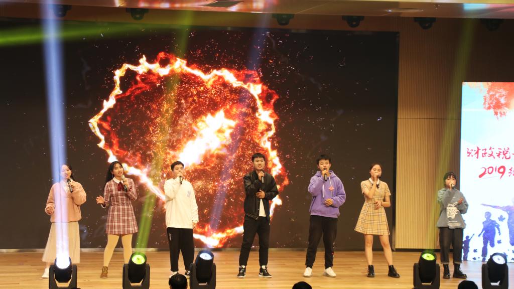 新疆籍维吾尔族学子倾情奉献,曼妙的舞姿与充满异域风情的服装引领观众走近大美新疆,使来自祖国各地的学子们凝聚在一起。合唱《相遇财税》由2019级财政学四班李少军重新填词,2018级全体代班演唱,讲述了学子们与海角社区app