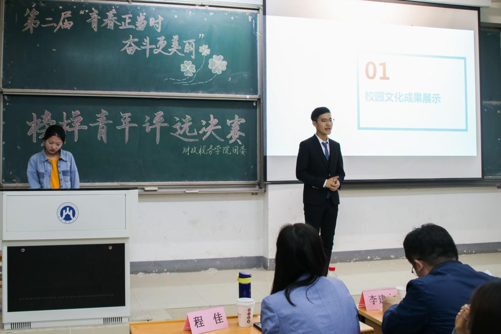 最后上场的是宣传活动榜样青年候选人2017级财政学六班郑昊晨和2017级财政学一班曹元荷。他们向观众们介绍了宣传工作对于学院的重要意义,以学院微信公众号等途径向同学们及时传递校园内的各类资讯,宣传学院文化。他们强调宣传工作是一种看似简单而又不简单的工作,在学院的建设中发挥着不可替代的巨大作用。
