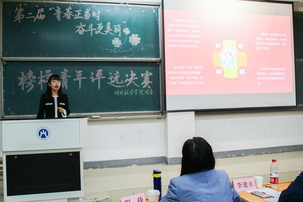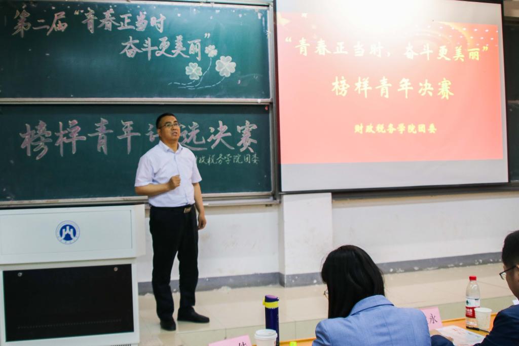 党委副书记张代宝,团委书记、2018级税收学辅导员王正一,2017级税收学辅导员李建永,2017级财政学辅导员郭滨滨,2015级税收学辅导员程佳。学生会主席团的部分成员及各班学生代表作为大众评委参加了本次评选活动,2018级的部分同学观看了活动。