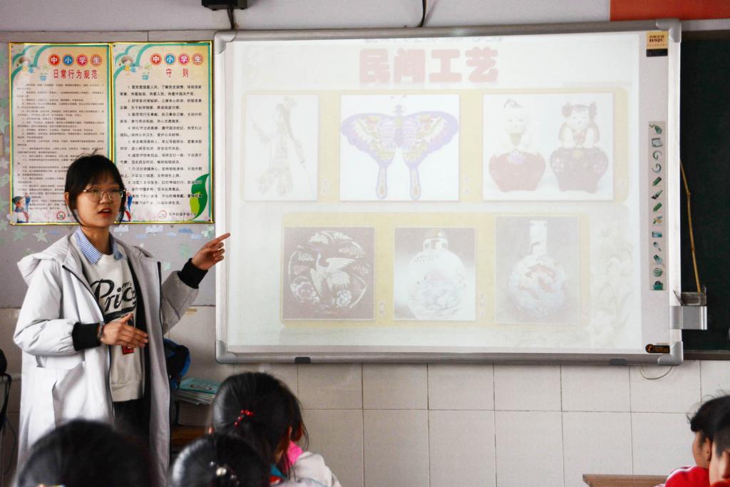 五年级二班的教室里,志愿者从细处着手,通过分享传统故事,使同学们感受到中国传统文化的丰富多彩。陶瓷、风筝、泥人、折纸和灯笼等精美的民间工艺,戏剧、国画等古老的民族艺术,中药、诗歌等悠久的文化瑰宝,端午赛龙舟、元宵闹花灯等独特的风俗习惯使得同学们沉浸在传统文化的海洋中。志愿者还带领同学们折纸,充分体验传统文化的魅力。无论是采用小组竞赛,还是和同学们互动的讲课方式,都让同学们在轻松愉快的氛围下享受了学习的过程,提高了学习的效率。