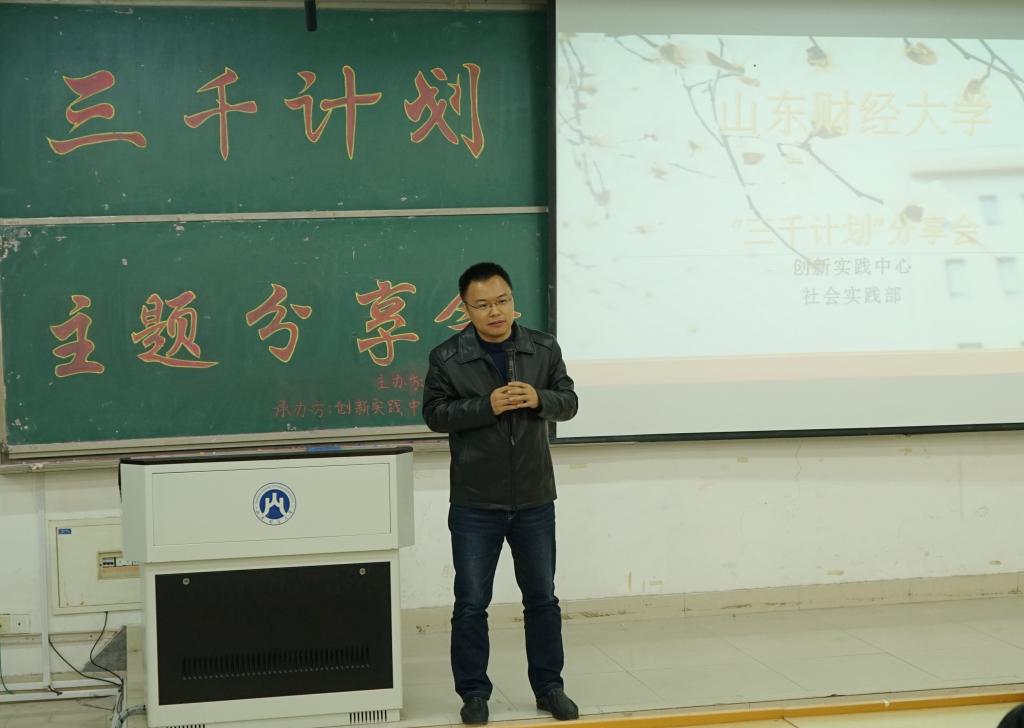 副院长马恩涛对本次分享会做出总结发言。他认为每一组分享都很精彩。每一组的分享从不同侧重点出发,有助于新生对“三千计划”活动的了解。他阐述了实践的重要性,认为同学们在社会实践中应提前做好充分准备,多学多看多问,从多方面获得知识。最后马恩涛副院长祝愿明年“三千计划”社会实践调研能取得更优异的成绩。