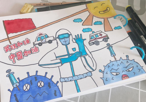 近日组织开展抗击疫情有关作品征集活动,同学们充分发挥兴趣特长,以写作、绘画、书法、诗歌创作的形式为疫情防控工作助力加油。