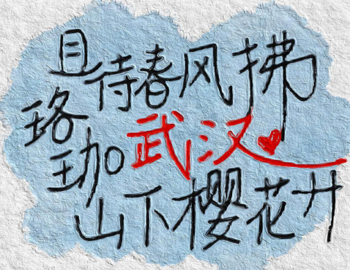 2019级财政学三班马梦宇《且待春风拂武汉,珞珈山下樱花开》抗疫创意作品