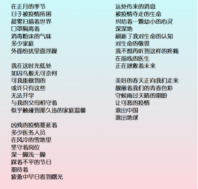 2018级财政学一班于远行《疫情期间》诗歌作品