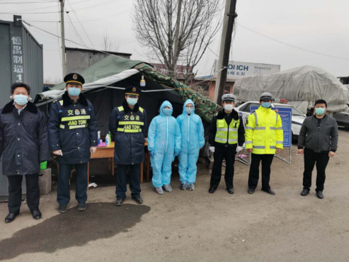2019级郭旭典父亲在路口对车辆和人员进行排查