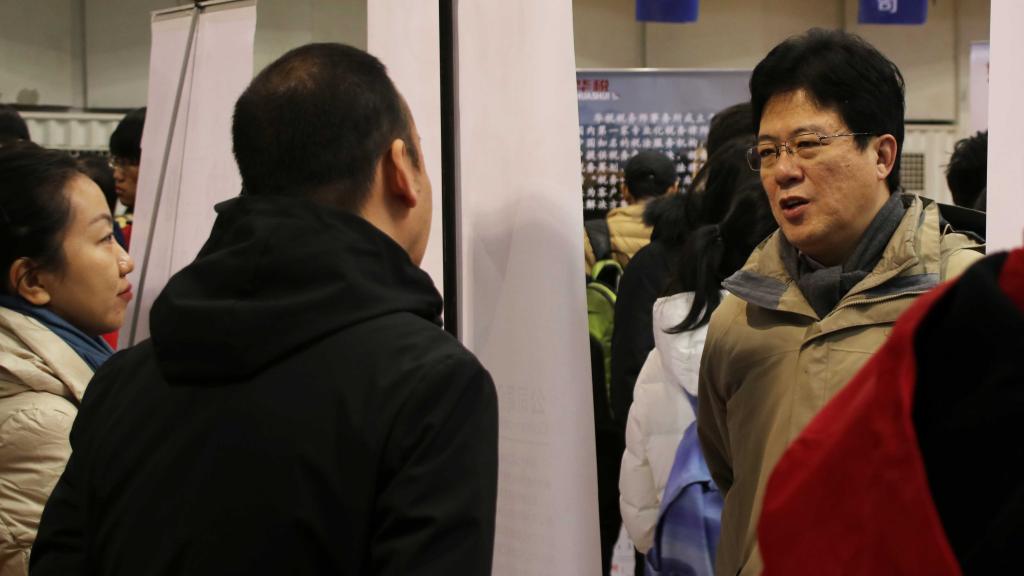 就业办主任李峻汝亲临现场,仔细了解用人单位的岗位需求、招聘情况,并与应聘学生亲切交流。